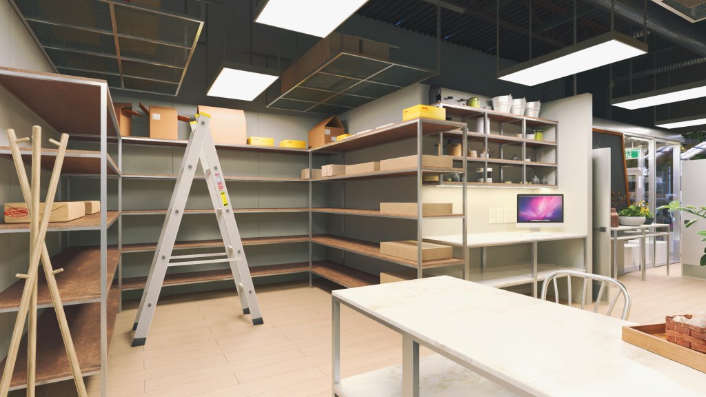 Due limited back of the unit space, the high ceiling allows to hang the steel rack for increased storage.