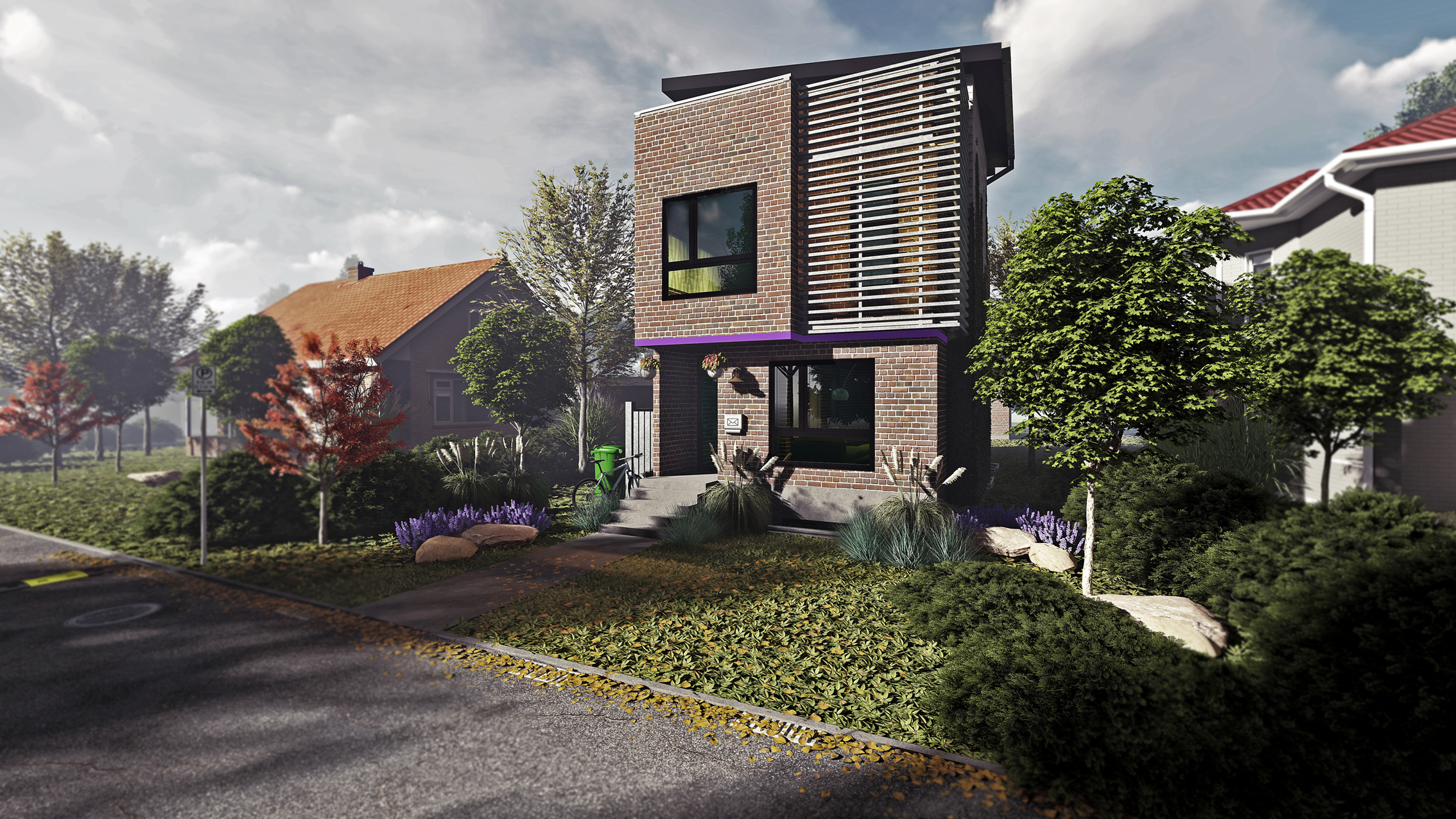 The bottom one is aligned with kitchen zone ceiling, making the main room highest ceiling elevation as dominant space.