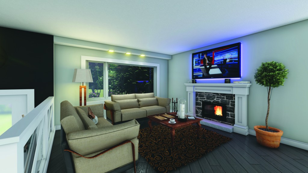 There wasn’t any option beside merging living room with kitchen area, therefore we ultimately we have studio type space with one adjacent bedroom. No doubts, the kitchen has to be cool in contrast of neutral warm main area.